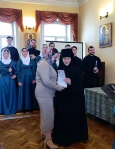 — Орос Валерия, студентка 3‑го курса, выступила с докладом «Регентская деятельность по подбору репертуара для разных составов клироса малых церковных приходов».