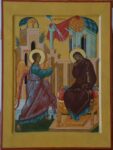 В шестой месяц после явления Ангела Захарии тот же Архангел Гавриил послан был от Бога в город Назарет к Пресвятой Деве Марии с радостною вестью, что Господь избрал Ее быть Матерью Спасителя мира. Ангел явился в дом праведного Иосифа, когда Мария читала Священное Писание и, вошел к Ней, сказал: «радуйся …