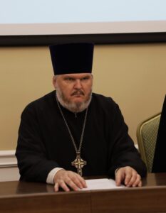 Иерей Владимир Литвишко, и. о. проректора по воспитательной работе, сообщил о распорядке дня на предстоящий 2023/2024 учебный год, о составе Воспитательского совета, а также о назначении курсовых наставников и старост курсов.