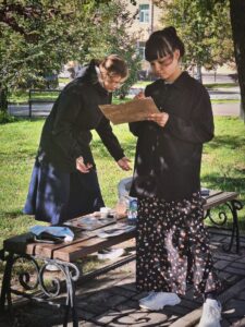 9 сентября 2023 года на отделении «Живопись» ( Иконописное) Калужского духовного училища продолжилась практика на открытом воздухе — пленэр. Руководитель практики — преподаватель Дубровская Мария Анатольевна.