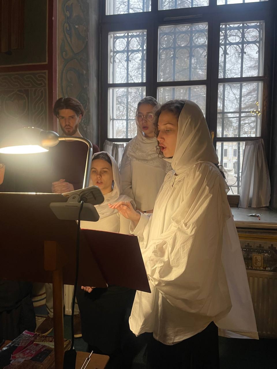 Богослужебные песнопения исполнила певческая группа Калужского духовного училища под управлением воспитанницы II курса Павловой Марии.