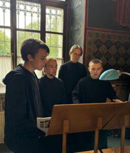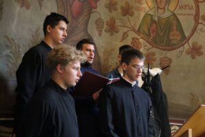 Богослужебные песнопения исполнил хор Калужской духовной семинарии под управлением воспитанника III курса Карпенко Ивана и хор Калужского духовного училища под управлением воспитанницы IV курса Морарь Марии.