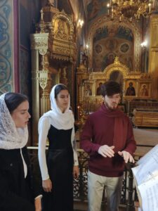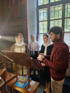 Богослужебные песнопения исполнила певческая группа Калужского духовного училища под управлением воспитанника II курса Васильева Пантелеймона.