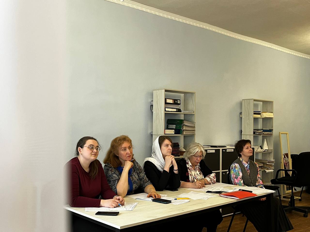 Комиссию составили: проректор по учебной работе Чеппель М.А., заведующий отделением «Хоровое дирижирование» (Регентское) Шелудякова Е.Н., методист Коркина Л.Н. и преподаватели Герасимова С.Н. и Долгих М.С.