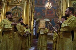 Богослужебные песнопения исполнил хор Калужской духовной семинарии под управлением воспитанника II курса магистратуры иерея Николая Кабичкина и хор Калужского духовного училища под управлением воспитанницы IV курса Морарь Марии.