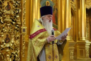 На запричастном стихе «Патриаршее обращение в день празднования 100-летия со дня блаженной кончины святителя Тихона, Патриарха Московского и всея России» прочитал протоиерей Андрей Богомолов.