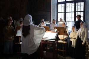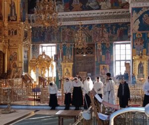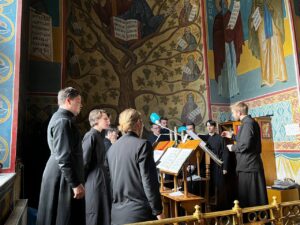 Богослужебные песнопения исполнил хор Калужской духовной семинарии под управлением воспитанника III курса Карпенко Ивана и хор Калужского духовного училища под управлением воспитанницы III курса Павловой Марии.