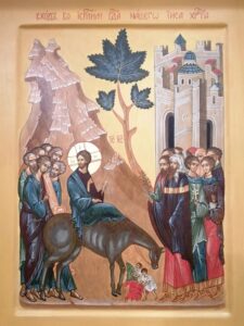 Господь сейчас входит в Иерусалим, в Свой город, для того, чтобы вступить в битву со смертью. С чьей смертью? Со смертью каждого из нас – с вашей, с моей, со смертью каждого из людей. Вступить в битву и победить.