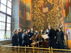 Богослужебные песнопения исполнил хор Калужской духовной семинарии под управлением воспитанника III курса Карпенко Ивана и хор Калужского духовного училища под управлением воспитанницы III курса Экономовой Марии.
