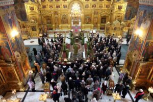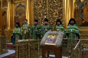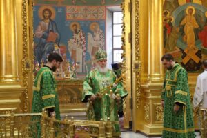 На Литургии были вознесены особые прошения и молитва о Святой Руси. По благословению Святейшего Патриарха Московского и всея Руси Кирилла эта сугубая молитва совершается во всех храмах Русской Православной Церкви за каждым богослужением.