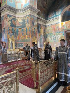 14 апреля 2025 года в Великий Понедельник в Свято-Троицком кафедральном соборе города Калуги была совершена Литургия Преждеосвященных Даров, которую возглавил ключарь собора иерей Максим Лихонин.