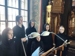 Богослужебные песнопения исполнил хор Калужского духовного училища под управлением воспитанницы III курса Бойко Елизаветы.