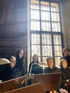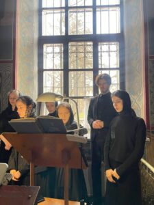 Богослужебные песнопения исполнил хор Калужского духовного училища под управлением воспитанницы III курса Экономовой Марии.