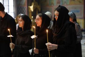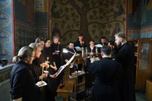 Богослужебные песнопения исполнил хор Калужской духовной семинарии под управлением воспитанника III курса Карпенко Ивана и хор Калужского духовного училища под управлением воспитанницы III курса Бойко Елизаветы.