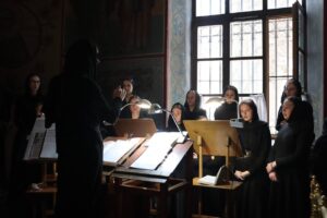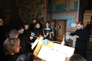 Богослужебные песнопения исполнил хор Калужской духовной семинарии под управлением воспитанника III курса Карпенко Ивана и хор Калужского духовного училища под управлением воспитанницы IV курса Морарь Марии.