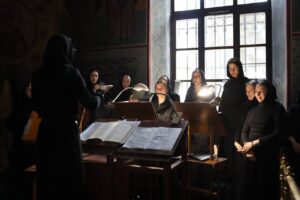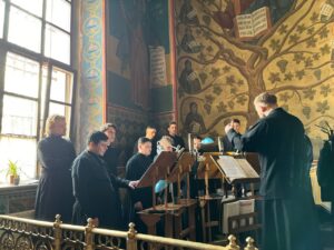 Богослужебные песнопения исполнил хор Калужской духовной семинарии под управлением воспитанника III курса Карпенко Ивана и хор Калужского духовного училища под управлением воспитанницы III курса Экономовой Марии.