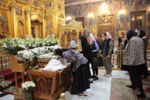 После каждения всего храма под пение тропарей Великой субботы «Благообразный Иосиф…» митрополит Климент и духовенство собора прочитали статии с тропарями перед Святой Плащаницей, повествующие о таинстве погребения и славном Воскресения Спасителя.