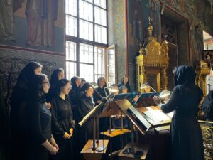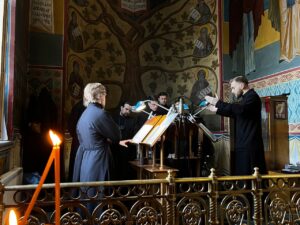 Богослужебные песнопения исполнил хор Калужской духовной семинарии под управлением воспитанника III курса Карпенко Ивана и хор Калужского духовного училища под управлением воспитанницы III курса Бойко Елизаветы.