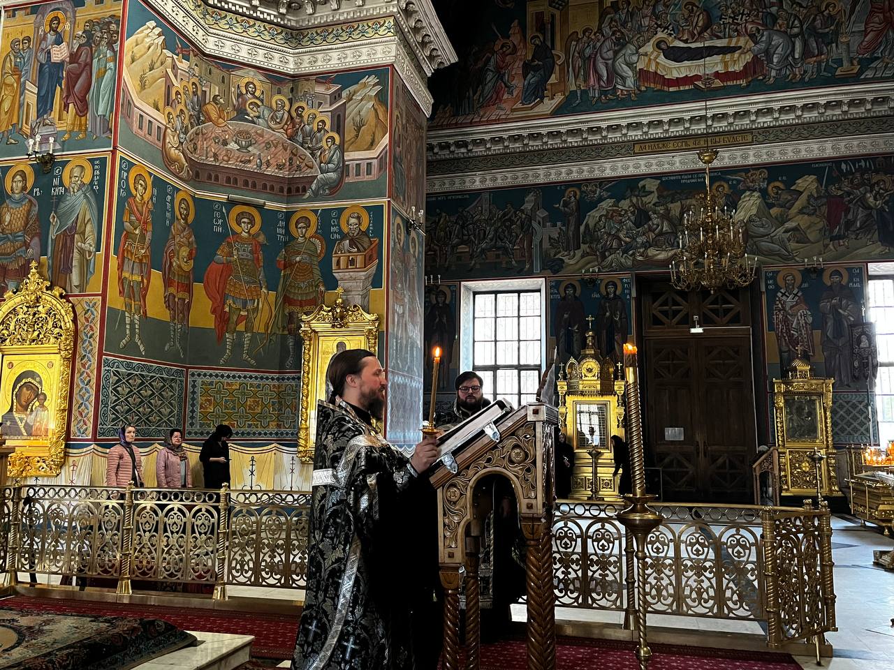 18 апреля 2025 года в Великий Пяток иеромонах Феофан (Сурин) совершил царские часы и изобразительны в Свято-Троицком кафедральном соборе города Калуги.