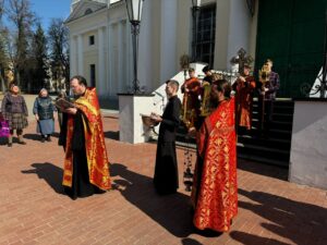 21 апреля 2025 года в Понедельник Светлой седмицы в Свято-Троицком кафедральном соборе города Калуги была совершена Литургия, которую возглавил ключарь собора иерей Максим Лихонин.