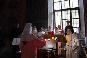 Богослужебные песнопения исполнил хор Калужского духовного училища под управлением воспитанницы III курса Павловой Марии.