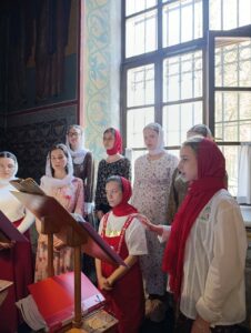 Богослужебные песнопения исполнил хор Калужского духовного училища под управлением воспитанницы III курса Экономовой Марии.