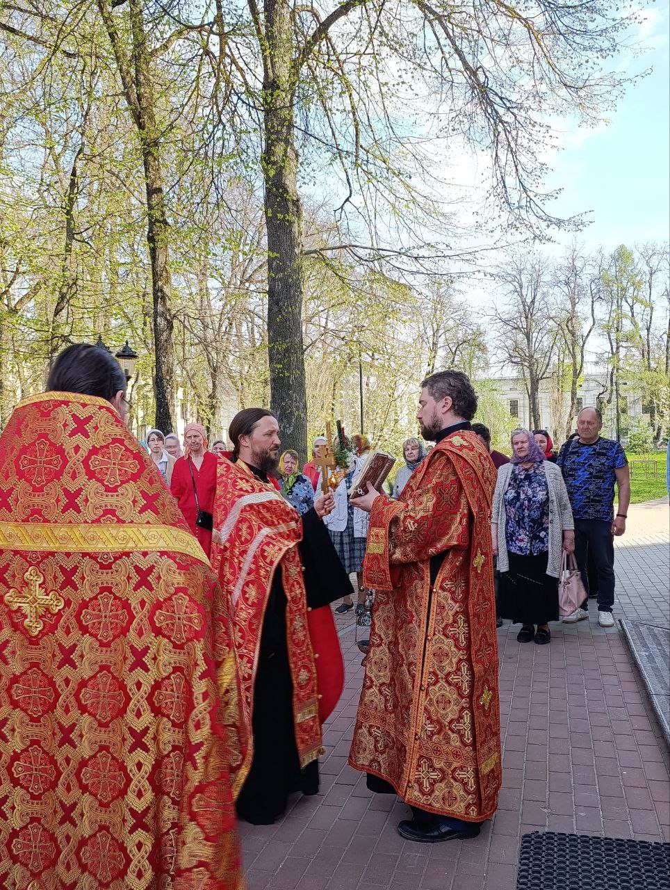 По окончании Литургии вокруг храма был совершен пасхальный крестный ход с чтением Евангелия и кроплением верующих святой водой.