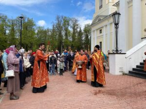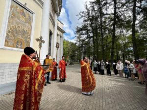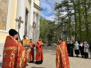 По окончании Литургии вокруг храма был совершен пасхальный крестный ход с чтением Евангелия.