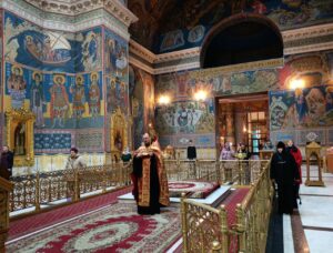 1 мая 2025 года в канун дня памяти святой блаженной Матроны Московской в Свято-Троицком кафедральном соборе города Калуги было совершено полиелейное богослужение, которое возглавил иеромонах Феофан (Сурин).