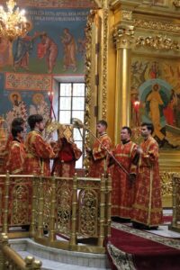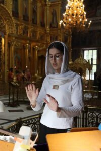Богослужебные песнопения исполнил хор Калужского духовного училища под управлением воспитанницы IV курса Морарь Марии.