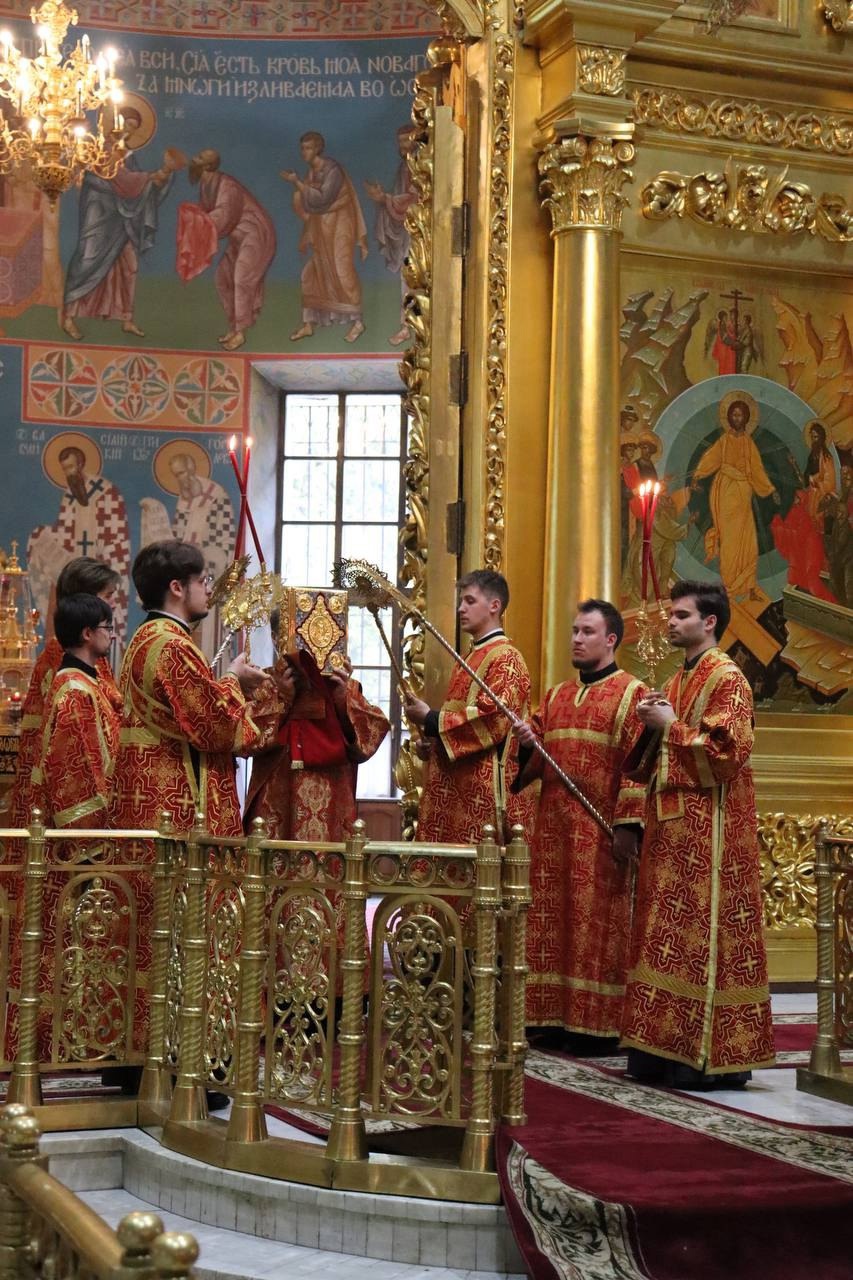 По окончании богослужения духовенством собора был отслужен канон Пресвятой Владычице нашей Богородице, а Высокопреосвященнейший владыка помазал молящихся елеем.