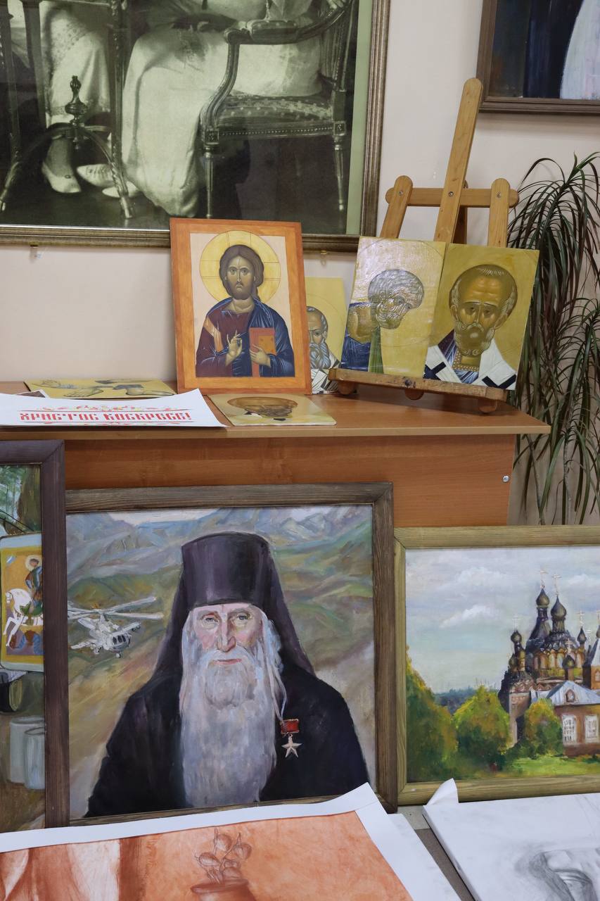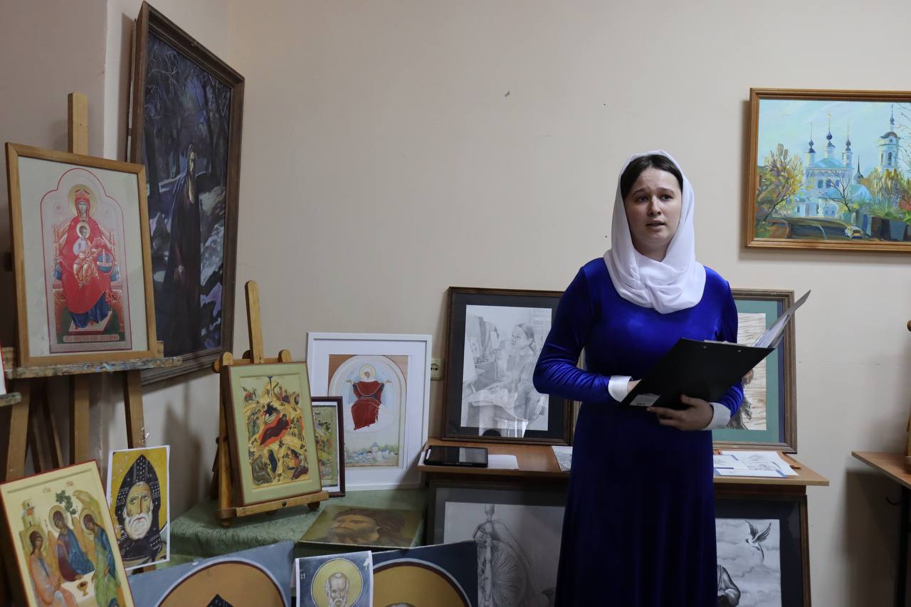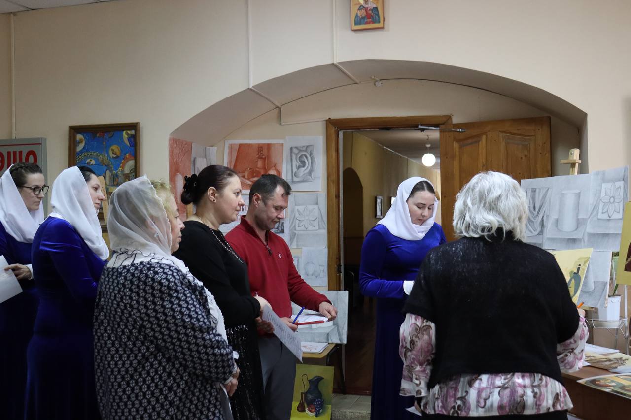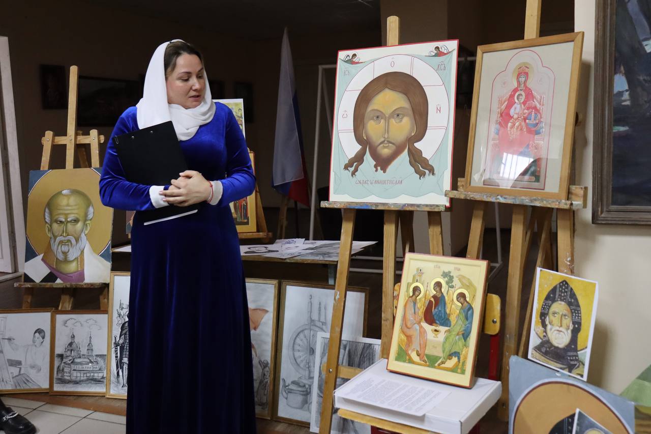 На просмотре были представлены работы студентов всех курсов, выполненные в разных техниках, по следующим предметам: «Иконописание», «Живопись», «Рисунок», «Композиция», «Каллиграфия и шрифт», «Пластическая анатомия», «Основы реставрации» и «Основы стенописи».