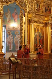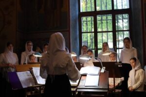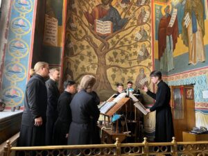 Богослужебные песнопения исполнил хор Калужской духовной семинарии под управлением воспитанника II курса Девличарова Фрола и хор Калужского духовного училища под управлением воспитанницы III курса Бойко Елизаветы .
