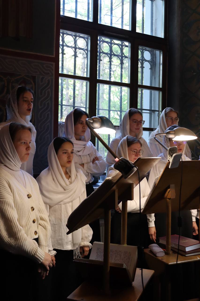 Богослужебные песнопения исполнил хор Калужской духовной семинарии под управлением воспитанника II курса Девличарова Фрола и хор Калужского духовного училища под управлением воспитанницы III курса Бойко Елизаветы .