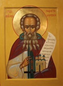 Преподобный Пафнутий Боровский родился в 1394 году в селе Кудинове, недалеко от Боровска, и при крещении был назван Парфением. Его отец Иоанн был сыном крестившегося татарина-баскака Мартина, мать Парфения носила имя Фотиния, 20-ти лет Парфений оставил родительский дом и в 1414 году принял постриг с именем Пафнутий в Покровском монастыре на Высоком от настоятеля Маркелла. Много лет подвизался инок Пафнутий в обители. Когда скончался настоятель монастыря, братия избрала его игуменом. Святитель Фотий, митрополит Киевский, рукоположил преподобного в священный сан (около 1426 г.). Тридцать лет провел преподобный в Покровской обители, где был и настоятелем, и старцем-духовником. На 51-м году жизни он тяжело заболел, оставил игуменство и принял великую схиму. После выздоровления в день святого великомученика Георгия Победоносца, 23 апреля 1444 года, ушел из монастыря и поселился с одним иноком на левом берегу реки Протвы, при впадении в нее реки Истерьмы. Вскоре на новое место к нему стала собираться братия. Число иноков быстро возрастало. Был построен новый каменный храм, вместо прежнего деревянного, в честь Рождества Пресвятой Богородицы. В росписи храма принимал участие лучший иконописец того времени Дионисий и его помощники. Преподобный Пафнутий подавал пример братии, ведя строгую жизнь: келлия его была беднее всех, из пищи брал худшее. В понедельник и пятницу не вкушал совсем, а в среду держался сухоядения. Из общих работ преподобный избирал самые тяжелые: рубил и носил дрова, копал и поливал огород, в то же время первым приходил на церковную службу.