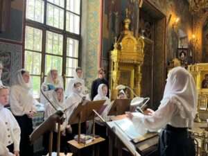 Богослужебные песнопения исполнил хор Калужского духовного училища под управлением воспитанницы III курса Бойко Елизаветы.