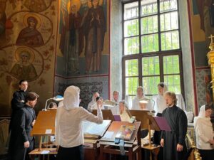 Богослужебные песнопения исполнил хор Калужского духовного училища под управлением воспитанницы III курса Павловой Марии.
