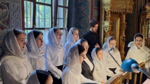 Богослужебные песнопения исполнил хор Калужской духовной семинарии под управлением воспитанника III курса Карпенко Ивана и хор Калужского духовного училища под управлением воспитанницы III курса Павловой Марии.