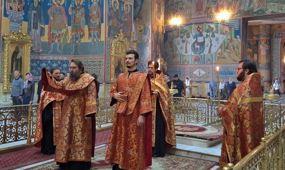 21 мая 2025 года в канун перенесения мощей святителя и чудотворца Николая из Мир Ликийских в Бар в Свято-Троицком кафедральном соборе города Калуги было совершено Всенощное бдение с литией, которое возглавил ключарь собора иерей Максим Лихонин.