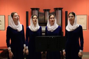 Вечер начался с пения тропаря «Христос воскресе», затем прозвучали духовные и народные музыкальные произведения в исполнении хоровых коллективов.