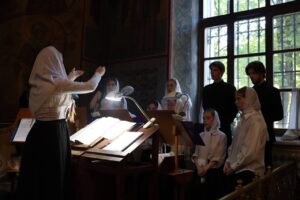 Богослужебные песнопения исполнил хор Калужского духовного училища под управлением воспитанницы III курса Бойко Елизаветы.