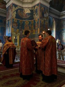 23 мая 2025 года в канун дня памяти святых равноапостольных Мефодия и Кирилла, учителей Словенских, в Свято-Троицком кафедральном соборе города Калуги было совершено полиелейное богослужение, которое возглавил ключарь собора иерей Максим Лихонин.
