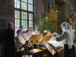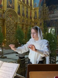 Богослужебные песнопения исполнил хор Калужского духовного училища под управлением воспитанницы III курса Экономовой Марии.