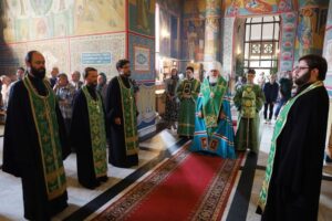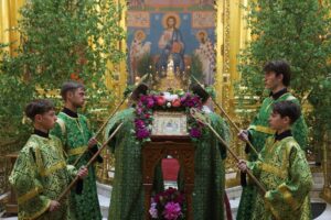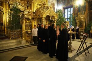 7 июня 2025 года, В канун праздника Святой Троицы митрополит Калужский и Боровский Климент совершил всенощное бдение в Свято-Троицком кафедральном соборе г. Калуги.