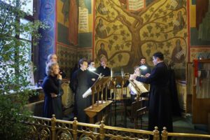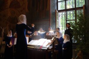 Богослужебные песнопения исполнил хор Калужской духовной семинарии под управлением воспитанника II курса магистратуры иерей Николая Кабичкина и хор Калужского духовного училища под управлением воспитанницы IV курса Морарь Марии.