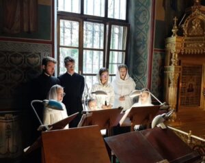 Богослужебные песнопения исполнила певческая группа Калужского духовного училища под управлением воспитанницы III курса Бойко Елизаветы.