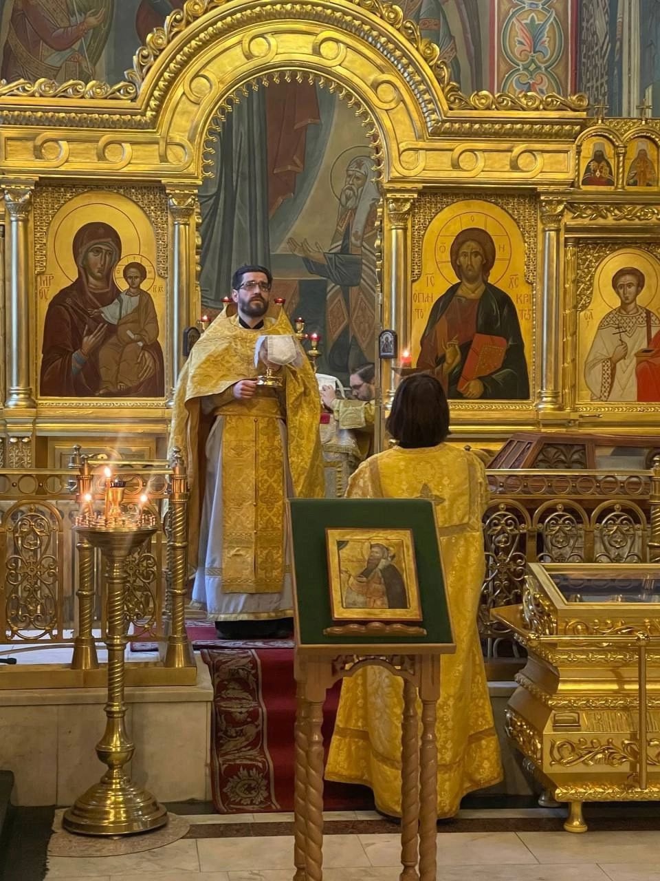 21 июня 2025 года в день памяти великомученика Феодора Стратилата в Свято-Троицком кафедральном соборе города Калуги была совершена Литургия, которую возглавил ключарь собора иерей Максим Лихонин.