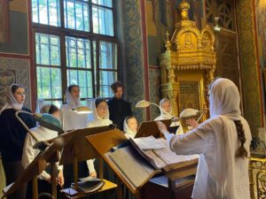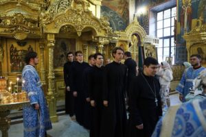 Богослужебные песнопения исполнил хор Калужской духовной семинарии под управлением воспитанника II курса Девличарова Фрола и хор Калужского духовного училища под управлением воспитанницы III курса Павловой Марии.