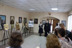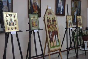 В фойе Калужского духовного училища открылась одноимённая выставка икон. Работы выполнены преподавателями и студентами отделения «Живопись» (Иконописное).