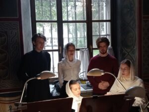 Богослужебные песнопения исполнила певческая группа Калужского духовного училища под управлением воспитанницы IV курса Экономовой Марии.